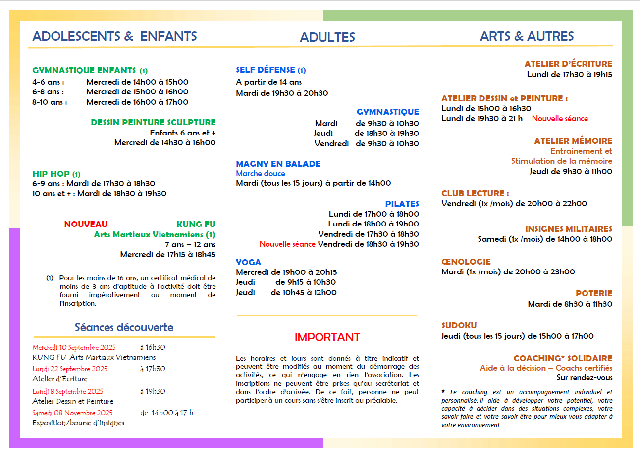 Toutes nos activités se déroulent au Centre Socioculturel de